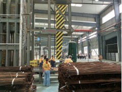 (一)青岛国森机械制造的热压重竹板材生产设备包括自动浸胶设备,装料机、热压机、出料机等。(1)普通重组竹/重竹地板热压机压力为2000-2600吨位以上压机,层数4-15-30层,前后和配输送平台各一套,整机全自动控制.具有精细度高,操作灵活,设计合理,噪音小,耗电省、效率高等优点。是将竹木竹丝。经刨片-压丝-浸胶-烘干-热压机高压等工序,制成强度高、质地密实均匀、规格1.22*2.44,1500*2100,1500*2700,1500*9800板材,板材幅面可以根据要求定制